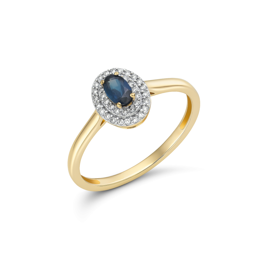 Кольцо из желтого золота с сапфиром и бриллиантами