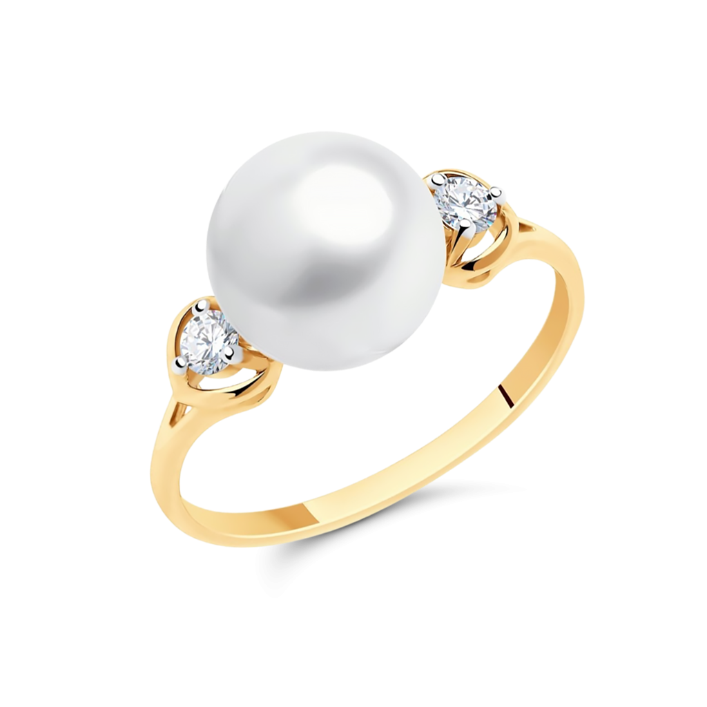 Золотое кольцо с жемчугом и цирконами