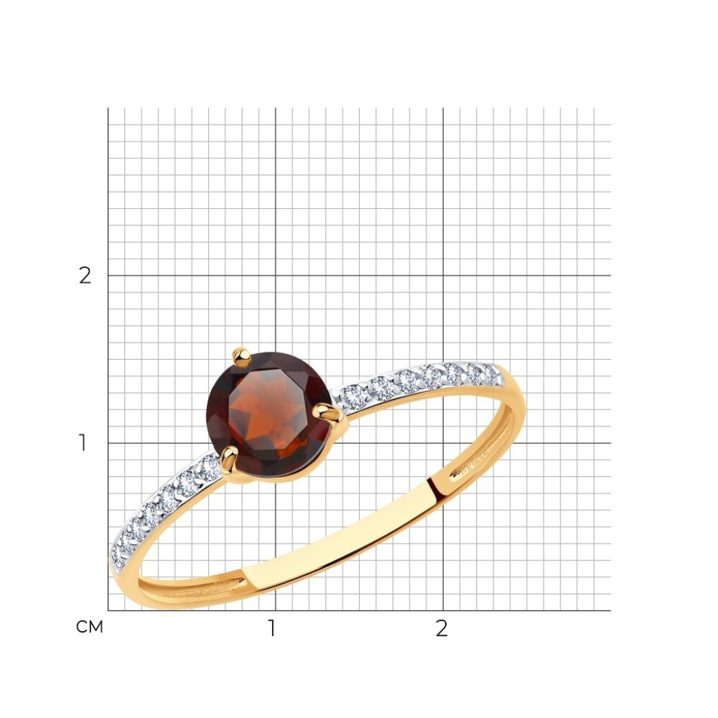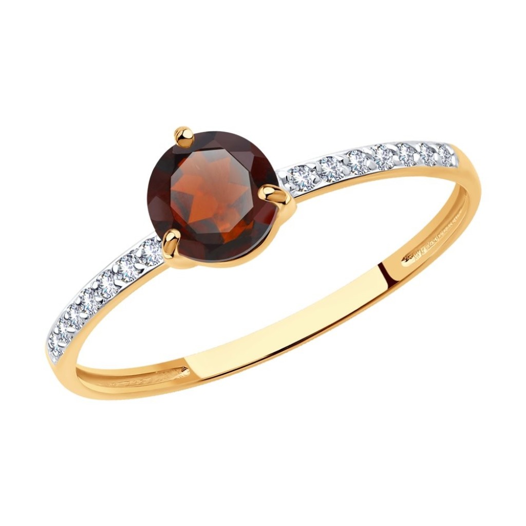 Кольцо из золота с гранатом и фианитами