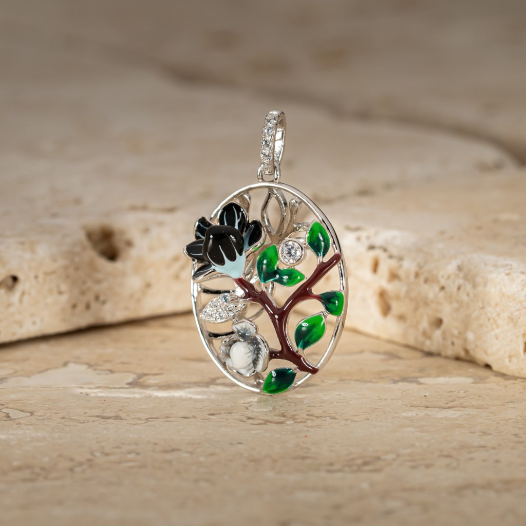 Серебряный подвеска с цирконами и эмалью