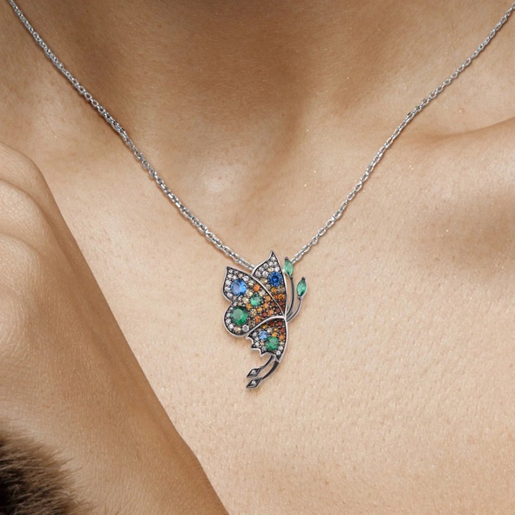 Подвеска из серебра со шпинелями и фианитами "Бабочка"
