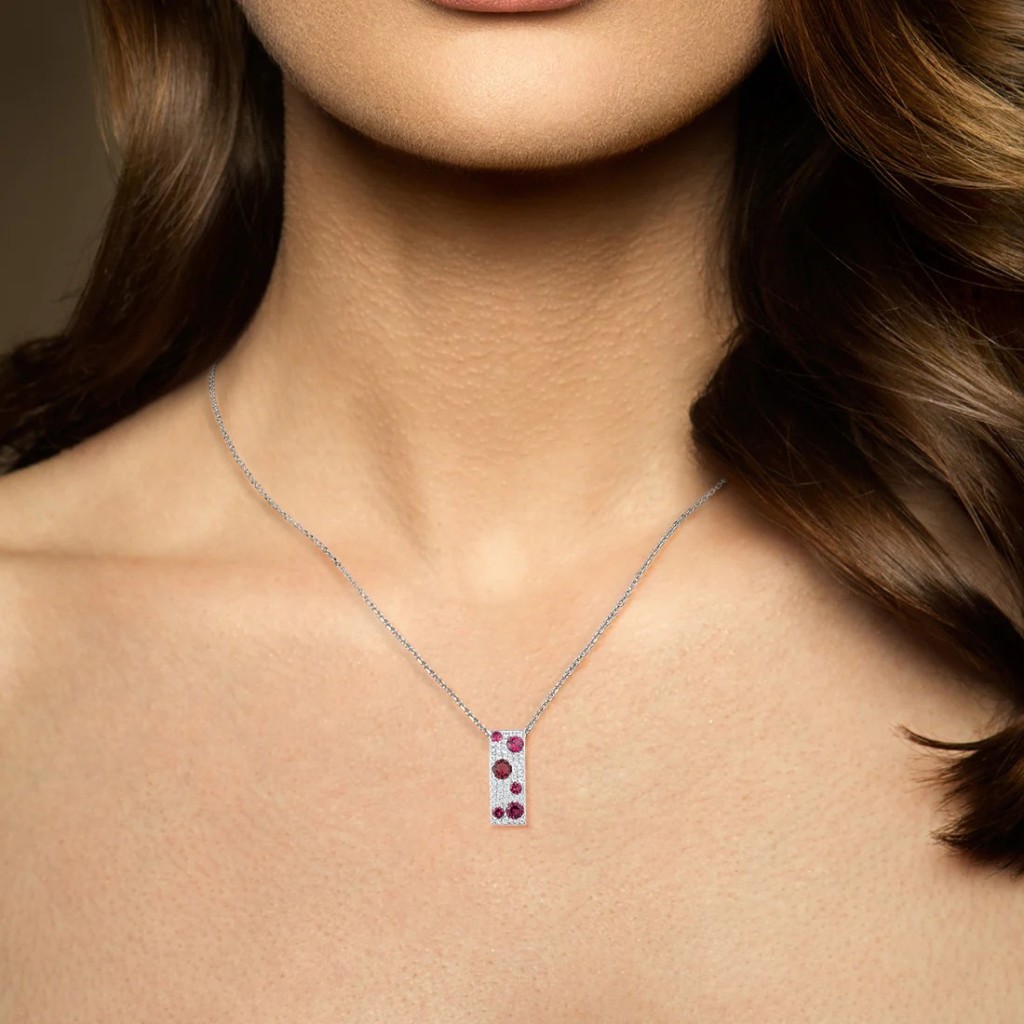 Подвеска из серебра с нано-рубинами и фианитами