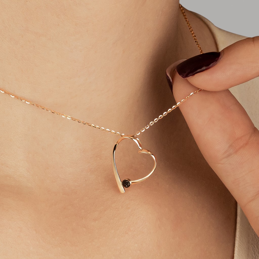 Золотой кулон с чёрными бриллиантами «Сердечко»