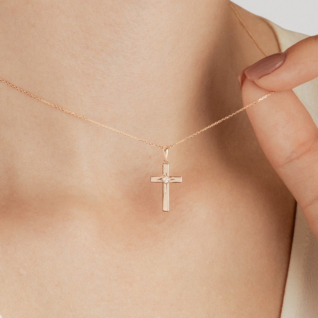 Золотой подвеска с бриллиантом "Крестик"