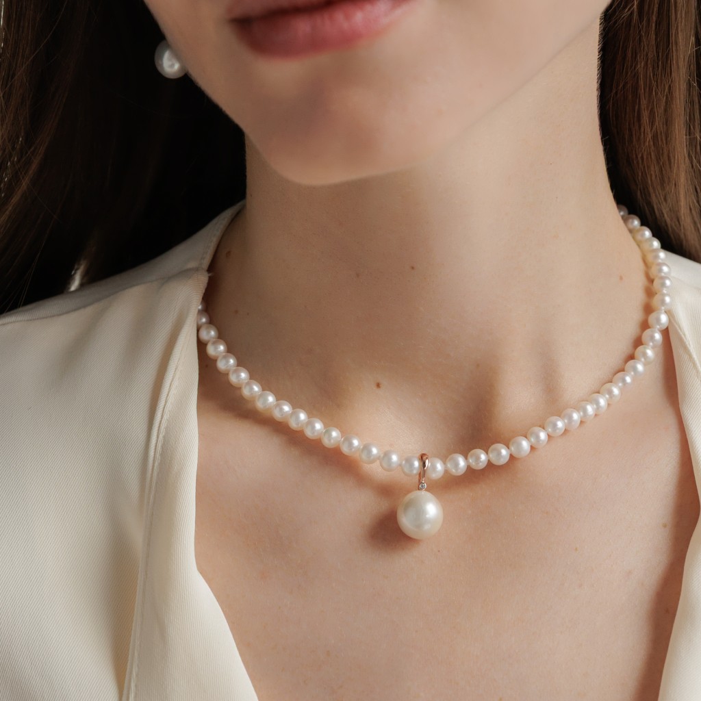 Позолоченный серебряный кулон с жемчугом и цирконием