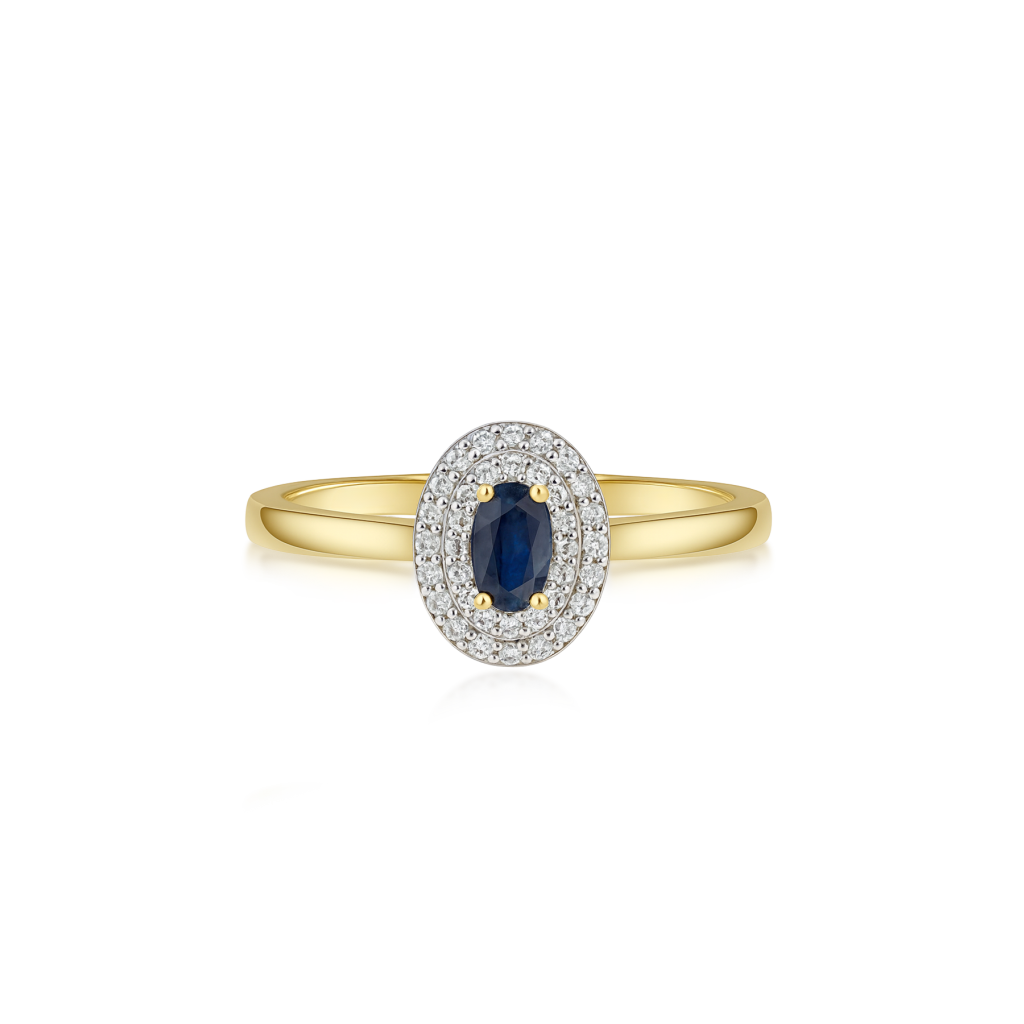 Kollase kulla sõrmus safiiri ja teemantidega