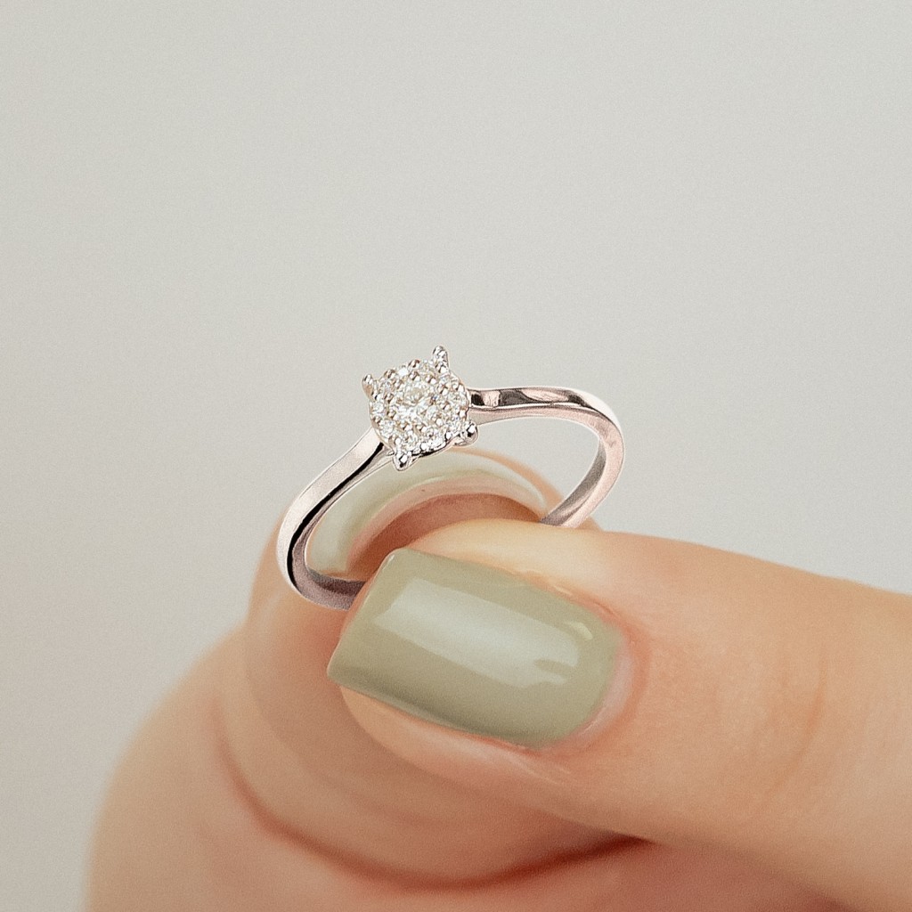 Valgest kullast sõrmus briljantidega