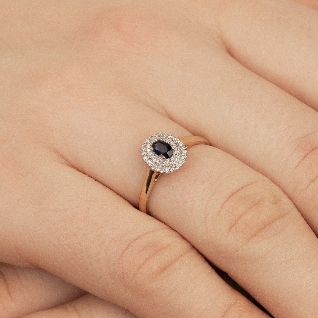 Kollasest kullast sõrmus safiiride ja teemantidega
